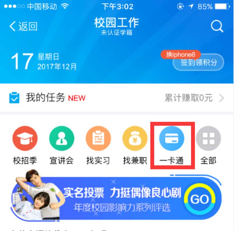 2、点击【一卡通】